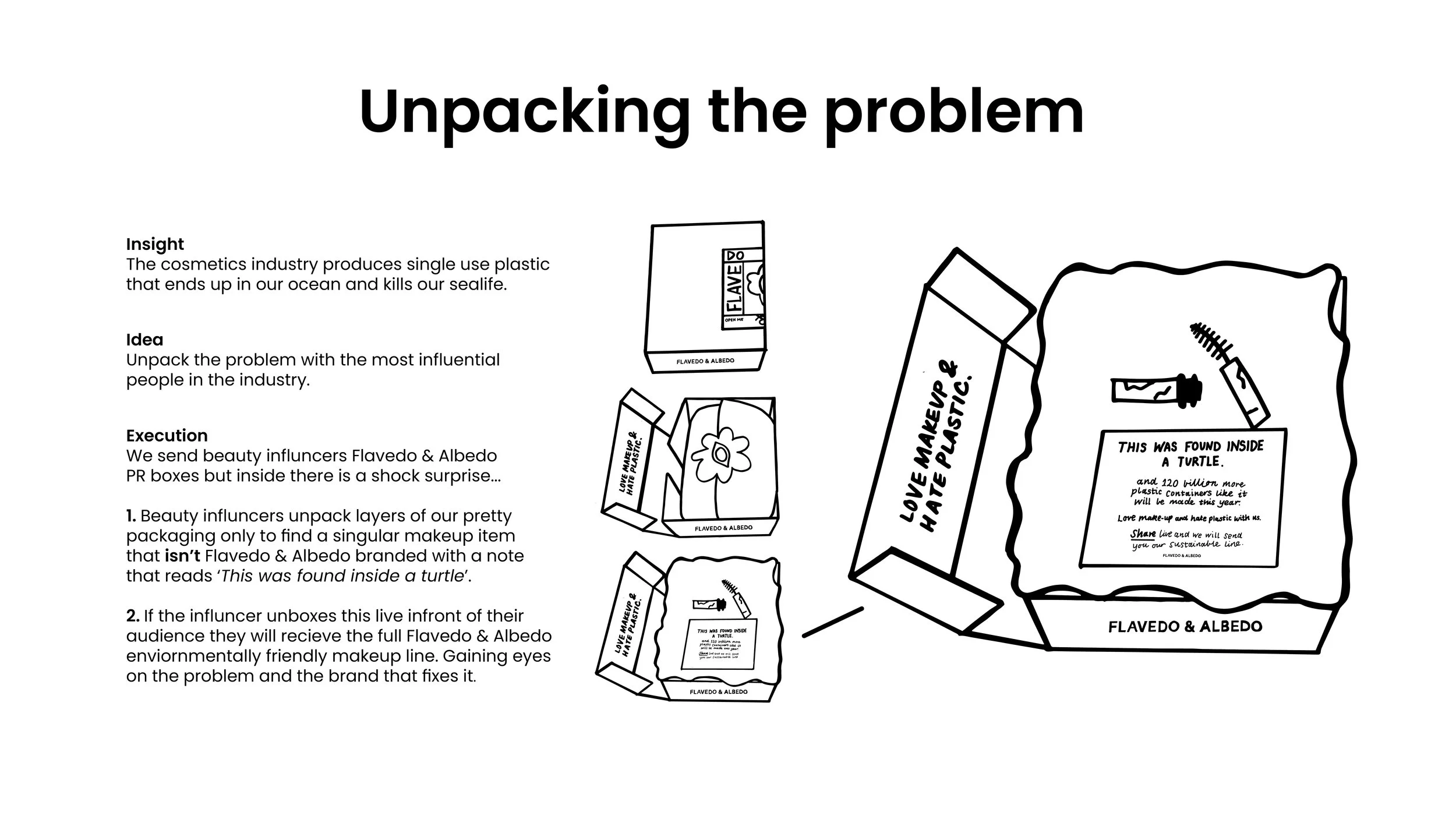 PR ClientFlavedo & Albedo.What we had to sellMakeup.HowA PR idea that inspires people to take action.The propositionCosmetics shouldn’t come in single use plastic.Mandatories Logo & CTA.